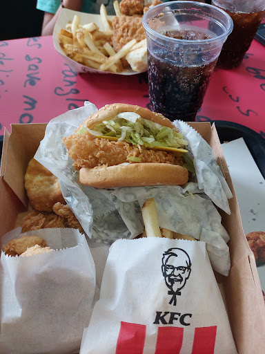 Read moreÚltimamente el servicio en KFC no es muy bueno, la comida ha bajado mucho la calidad, la ensalada y el pan ya no saben igual, los trozos de pollo parecen de palomas en vez de pollos adultos, y el cuento de las alas, antes uno pedía que no le pusieran alas y no le ponían ahora es todo un conflicto de ideología, pedir eso, el servicio de los hombres tenía dañado el sistema de secado de manos, en la barra de salsas no había la de sabor a chipotle. La...