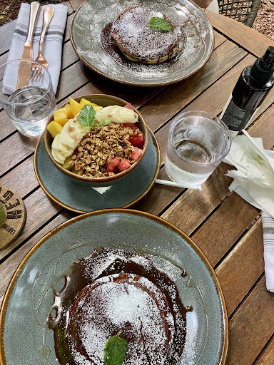 Read moreWe stumbled upon this slightly hidden gem by walking along the urban short trail that displayed functional art and a swinging bridge over a creek. Not fully knowing where the entrance was, we entered through the back porch. Unfortunately they did not provide an printed menu in English and the QR code failed until the server equipped us with the restaurant’s wifi password only to notice that the Brunch Menu was only in Spanish. We spotted pancakes, seasonal fruit and a green detox juice which was perfect for us. The staff and service was wonderful!!! We enjoyed the atmosphere, decorations and ability to sit out back among the luscious greenery. Walking towards the actual entrance we discovered how spacious the restaurant is not in lacking ambiance and details. We are looking forward to...