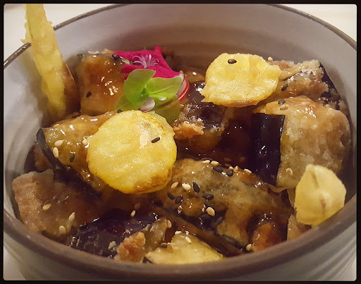 They recently added a new dish - sweet and sour eggplant and it is delicious between seer and sour and a little fried on the edges... 👌🏾 My new favorite side dish!