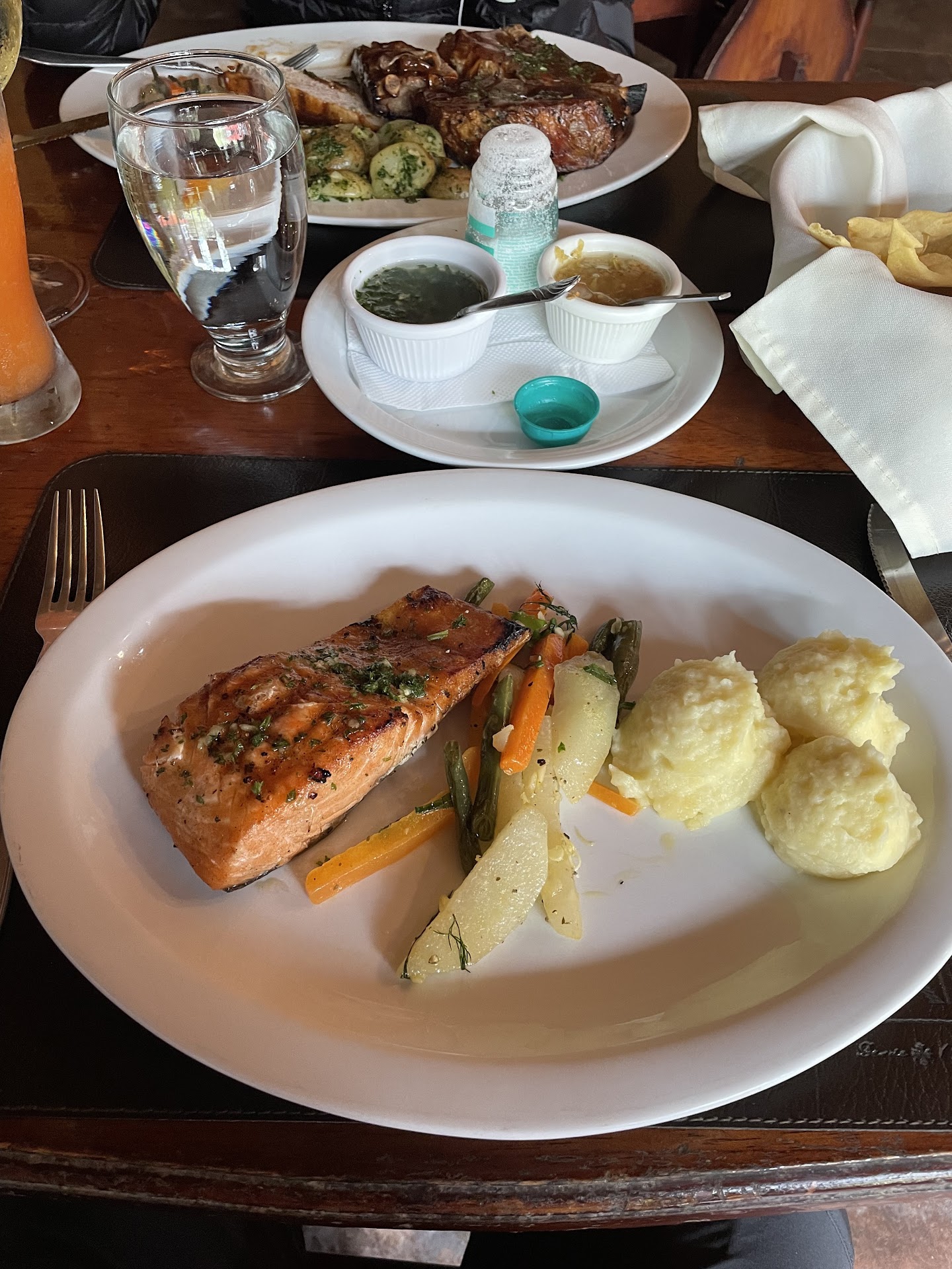 LO BUENO: Primero, el lugar es super lindo. Es frescito y tranquilo, no hay ruido y se ve la naturaleza. Es restaurante es bonito, hecho de madera. El servicio también estuvo muy bueno. Nos trajeron unos pancitos con aceite de oliva gratuita.