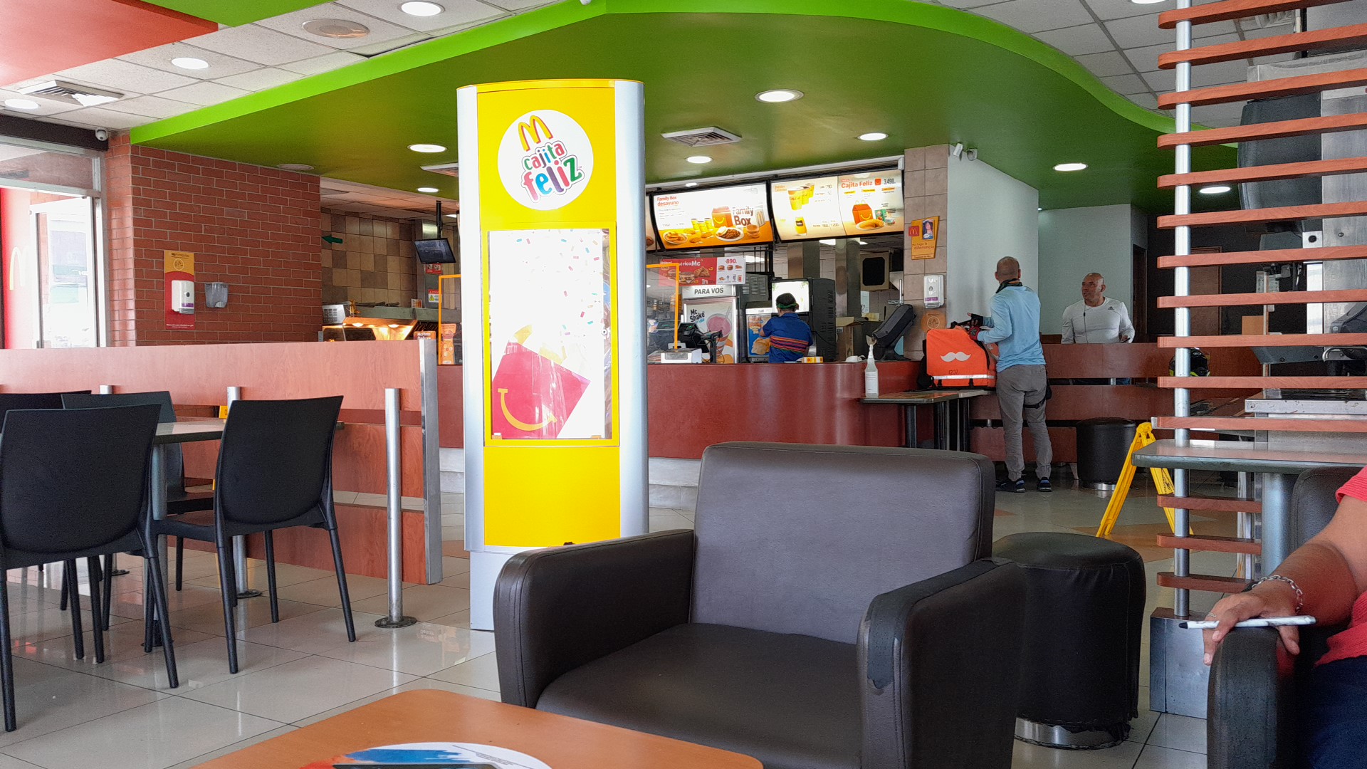 Read moreAyer visité este McDonalds con 4 miembros más de mi familia y fue una experiencia estresante pues al llegar el piso estaba lleno de agua por la gotera que caía del techo y los motorizados con sus capas estilando el agua y nadie de personal secaba , sentí miedo al saber que mi madre o cualquiera de nosotros nos pudiéramos caer, al llegar a las dos cajas registradoras no había nadie delante nuestro y aún así esperamos más de 10 minutos para ser atendidos (7:00 pm, aprox) , cuando voy por las bebidas no había ni hielo ni tapas ni pajillas y me dirijo donde la señorita que me atendió y muy tranquilamente me dijo que no había, después al ir a utilizar los baños aquello era un asco total, pues o no había agua o no sé, porque hasta faltaba la llave en uno de los lavamanos y los sanitarios llenos de heces. Es increíble que con los precios que tienen den un servicio tan malo y una lástima que el único McDonalds de Escazú se encuentre en estas deplorables condiciones. Habíamos muchas familias con niños allí pues tienen play y uno los lleva a jugar, pero verdaderamente no creo volver a ese lugar nunca más. Que mala...