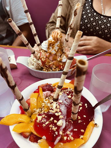 Read moreComí una ensalada de frutas con extra de melocotones y barquillos caseros. Menú amplio, suficiente para competir con por ejemplo POPS al igual que su infraestructura. Tendré que probar más productos porque en el caso de la ensalada de frutas que consumí, sentí bastante verde las frutas pero frescas. El delicioso sabor del banano, no lo encontré pero la piña parecía que comía el corazón, mientras que la papaya se notaba como pequeños cuadros de zanahoria. Los helados que la acompañaban, tenían buen sabor pero, no me los dieron a escoger, y la gelatina, pues bien, normal. Creo que en manos visionarias este negocio lograría mucho más. Ah, y el precio final, me invita a no volver pero, habrá que darle una segunda...