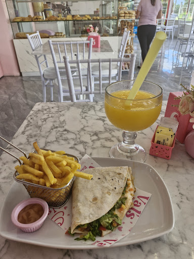 Read moreEl ambiente es muy lindo, limpio , muy estilo pinky (rosado) el servicio fue bueno de las personas que atendieron , el precio justo pero mi mayor problema fue con los productos, el café era pura agua , el postre por exteriormente se veía bien pero estaba añejo, me pedí también un crocante alemán, nuevamente externamente te invitaba a comertelo pero estaba viejo, sentí como que tenía mucho tiempo de estar en vitrina. Lo pedí para llevar para no botarlo dejarlo ahí . Realmente llevaba grandes expectativas con este lugar , pero fue una gran decepción en el ámbito principal , que es el sabor de sus productos. No me interesa que haya tanta variedad mientras que sus pocos productos sean...