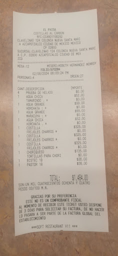 Respecto a los alimentos, coincido con varias publicaciones de que es caro, si bien la porción de costillas no está mal e incluye guarnición, considero que pagar $350 por este plato, en precio es casi lo que cuesta un corte de 400 gms en un mejor lugar. Las aguas son ricas, pero un litro te cuesta 100 pesos, fuera de precio de cualquier lugar, ojo, el precio es igual tanto en restaurante como precio calle, ya que el lugar tiene una paletería la cual atienden desde la calle, por ende es un producto caro. Los tacos, en porción pequeña (un taco de cualquier taqueria) te cuesta $36, y una orden de 6 arriba de $200.
