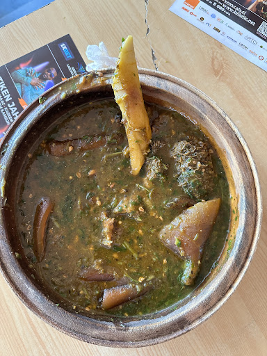 The placali is well cooked and served. The place is cosy, a bit hot (some fans will be welcome) The restaurant only offers placali with okra sauce (with kplo, smoked fish, beef). On the drinking side, there is everything from soda to beers (local and imported), you can even have wine and champagne. I would have appreciate that there are some paper towels instead reusable napkins, which did not...