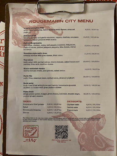 Ā Ā Ā Read moreI'm a local and as such am accustomed to Croatian waiters and chefs being a little bit snobbish and rude. Here however I've felt like I've stepped into another realm. We came with no reservation, they welcomed us and took our name and said they'd have a table for us ready in about 15 minutes, if we could just come back then and if it's not ready by then, they'll give us complementary drinks. Of course after 15 min the table was free and ready and they ushered us in. The waiters and waitresses were so nice, so friendly, in such a good mood that our appetites grew bigger. The waiter that was serving us gave us suggestions on the food and we heard him give great and expert tips on food to other guests. All though we came with no reservation and definitely caused some disturbance in their schedule, they didn't rush us after we'd finished and left us talking saying there's no rush. The food was excellent as it always is in Rougemarin City and the original Rougemarin. We had burgers. But the service was out of this world and these people should be holding courses on how to behave in the restaurant business or even...
