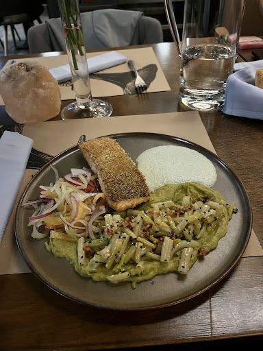 Read moreI liked everything about this restaurant- cosy atmosphere, nice service, smooth background music, but what I liked the most is the plate I ordered- salmon with quinoa crust, horseradish foam and the veggies. Salmon was crispy from the outside and soft from the inside, the perfect combination. If you are opting for healthy, delicious and fullfilling meal I strongly recommend this one :) Although you can’t go wrong with other meals they have in offer as my friends were eating different meals (katsu chicken, beefsteak, fettucine with salmon) and they were also very satisfied with their choices. For appetizer I do recommend taking beef tartar and for sweet tooth I recommend cannoli filled with ricotta and pistachios. Looking forward to going back to this restaurant, next time when the live...