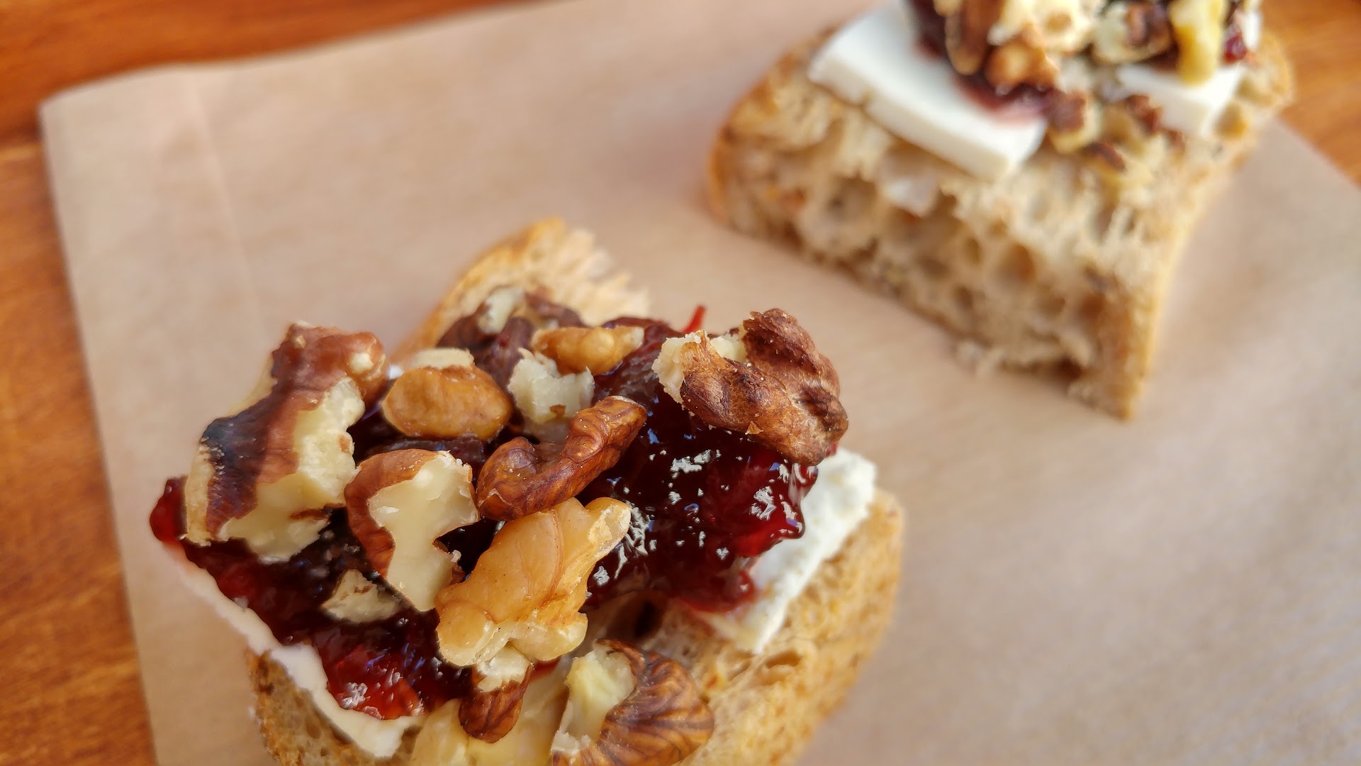 The dessert was a slice of bread with hazelnut, berry sauce, chopped walnuts and cheese. It was fine. It was all fine.