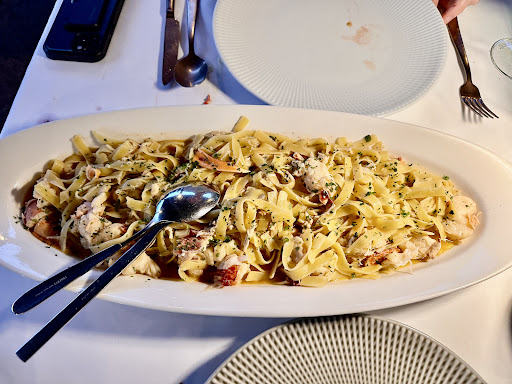 As we politely declined the sparkling wine as aperitif from the waiter and said we would focus on the regular wine, our waiter didn't even bother to offer any of it. Instead, we had to ask the other waiter (the one mentioned above) to bring us 0.5 litres of open wine. So the "broad choices of wine" mentioned in the other ratings will forever remain a mystery to us. Once our water bottle was empty, our waiter would take it without even bothering to ask if we wanted another one. Given this low level of attitude, it's unnecessary to mention that nobody would ever refill our empty glasses.