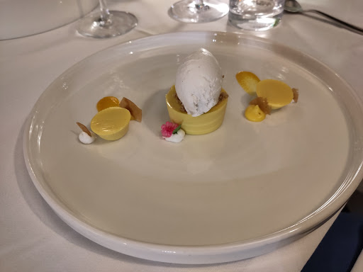 Before desert we were served a scoop of watermelon sorbet āto clear our palateā. What a great idea!!! Tasty and non-loading. Perfect pre-desert treatment.