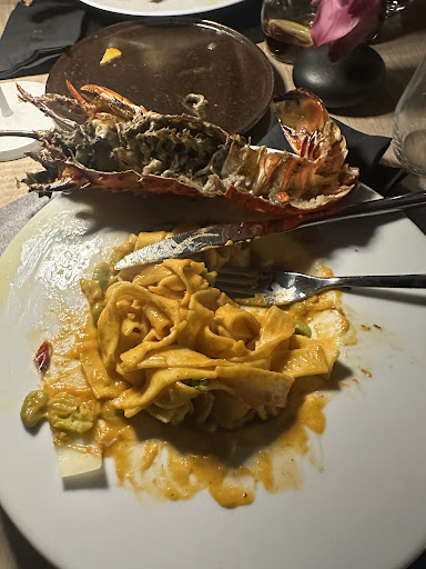 Initially the waiter was friendly, he made very strong recommendations (he guaranteed we’d enjoy the dishes) and told us to avoid certain items on the menu because they weren’t good. Coincidentally all recommendations were the most expensive items on the menu. We took the waiters recommendations for the main course - lobster pasta - and one starter - the seafood kebab. I also ordered the tune tartar. The waiter got my order wrong and brought me the beef tataki, when I stated that was not what I ordered he got quite annoyed and argued that I had ordered it showing me the order he had written down incorrectly. The tuna was absolutely average, it was topped with a flavourless mayo and was sat on top of a overly sweet seaweed salad. The seafood kebab was disgusting - the squid was overcooked, it was greasy and was not seasoned.