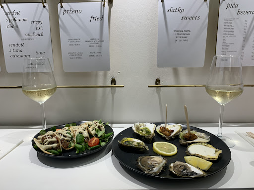 The oysters, sourced fresh multiple times a day from the family's farm in Ston, are creatively prepared and a must-try. We also indulged in the mouthwatering tuna tacos, a true delight. Watching the skilled cook and owner effortlessly prepare a continuous flow of meals in the compact kitchen was astonishing, and each dish seemed like an invitation to return. It was a common refrain that many patrons were returning customers, a sentiment we echo as we anticipate revisiting during our stay. (This holds significant weight as I typically avoid eating at the same place twice on a short vacation.)