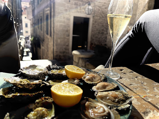 Read moreYesterday we enjoyed Edulis Oyster bar in the old city of Dubrovnik, Croatia! We met Daniel and Antonio who were the visionaries and entrepreneurs of this beautiful restaurant! These are the freshest oysters I have ever experienced. Antonio’s family has been caring for an oyster farm for multiple generations. He drives 50 KM each morning to facilitate these fresh oysters. We learned of his family history, the oyster farm, and the time from seedlings to plating these delicate, delicious, flavorful morsels. As the restaurant waits to get the permit approval for the outdoor seating from UNESCO, as their restaurant dwells within a UNESCO protected building. Daniel shared the history of all the dated stairs outside where we were able to enjoy our lunch. He said throughout history many people have sat on these stairs to enjoying taking their coffee in the morning and eating cuisine from the local restaurants and has been the meeting place for locals for generations! Lastly, Antonio’s mother sent this Ston cake into the restaurant for others to enjoy a historical and local dessert that is unique to this region which is...
