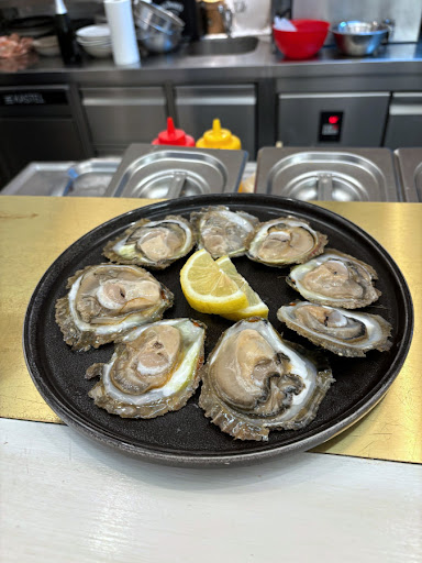 don't get fooled by Google maps and beware to sit down at the tables in front of the restaurant, as they belong to the restaurant on the opposite side. the oyster bar is so brand new that they don't have outdoor seating (yet). Instead, you can opt for bar seats where you'll witness the family's skilled oyster shucking and careful selection process, whether they're served raw, fried or grilled. Alternatively, you can take your food "to go" and enjoy it on the restaurant's provided cushions on the stairs, just like the locals have done for centuries.