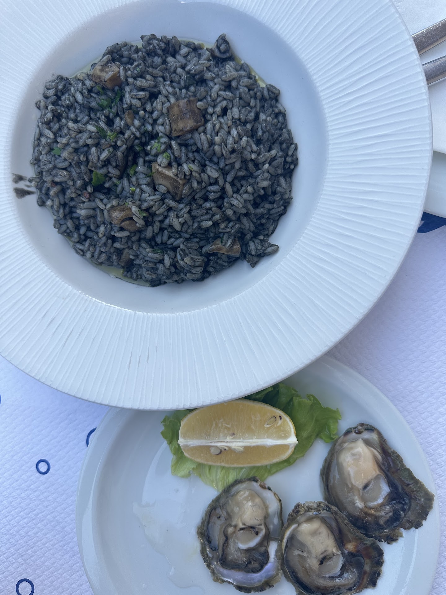 The food came fairly quickly, coffee, oysters and then the risotto. Oysters were small, but very good and fresh.