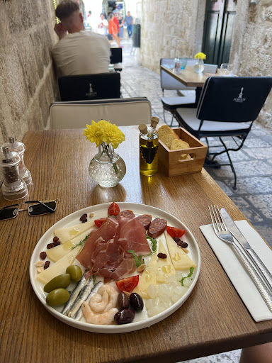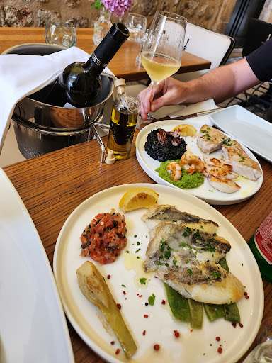 This place is a gem in a town full of cobblestones. The prices are not really that different (or much higher) from most restaurants (not pizzarias or street food stuff of course) in Old Town but this place is definitely in a different categorie. In most restaurants you get a seamingly thrown together, yet tasty salad or nicely grilled piece of fish. Of course there is nothing wrong with that but if you want something more... Some elevation in your dish. Something a little distinct in originality and outstanding in quality... This is the place to go. Not only is the food perfectly cooked, matching veggies and condiments bring it all together. It was just perfection on a plate. We had the Istrian Ravioli (stuffed with prawns and ricotta, complimented by some more very flavourfull prawns and a creamy wine sauce). As the main we shared the grilled John Dory filet (that was so soft, it just melted away in the mouth) with well seasoned Romano beans, nicely grilled fennel and some fresh tappenade with tomato and onion. And the fisherman’s plate, which had black cuttlefish risotto with a few little squids on top (creamy and packed with flavour), some excellent prawns (very moist, yum) with a green pea risotto (I think. it was definitely my favorite "side dish"), grilled squid tubes (with which the oil on the side went perfectly) and swordfish (wow! moist with a little bite). There's also an outstanding wine list with a few exceptional wines to choose from. Our waiter was very attentive and passionate about the food and wine. He definitely knew what he offered, explained the origin of the wine and gave some skillfull recommendations about the combination of dishes and matching flavours. I highly recommend this place if you want to wine and dine in a restaurant unlike the others...