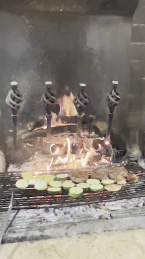 Wonderfully off the beaten track. Well, it was a bit better than a track, but not much. We liked that. This is rural in a painterly setting. We arrived, looked around. Parked on a grassy verge. The restaurant was somehow not really much in evidence. But up the steps we went and was confronted by a massive open fireplace. We found a table for two and gazed in awe at the menu. Seriously meaty. The drinks came and we kicked off with a fluffy truffel omelette. Then four fist-sized pieces of veal came with grilled vegetables. Service was not rapid but we liked that beacaue this was a meal to savour at length. Wine flowed. We flowed with it, held hands across the table and vowed to return. We wondered if we should tell anybody about this place. But decided not...