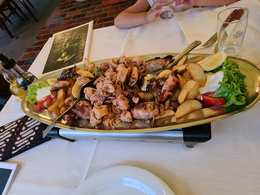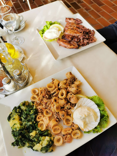 We had two pizzas and a mixed calamari plate for 2 persons, featuring calamari fritti, grilled calamari, calamari filled with rice and ham (of all things), and calamari risotto. We had some local white wine to wash it all down. The pizzas were relatively decent, if a bit bland, but passable. The fried and grilled calamari were ok, but very likely frozen imported stuff, and not localy sourced. The filled calamari was just plain strange, and the risotto was the saddest thing since Mufasa was trampled to death by a stampedo of crazed gnu. Utterly inedible. The wine was passable. The service was horrible - the waiter was incredibly impolite and dissinterested in actually earning his pay, often making remarks to other customers. Hard pass...