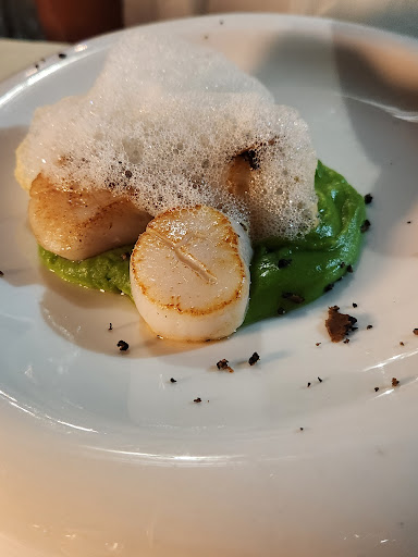 But back to the experience. The lady at the reception was wonderful. We arrived a bit early and she entertained us with small talk until our booked table was ready. The service team was very attentive: always refilling water and wine, bringing complimentary homemade bread, and showing us the fish of the day. The tables are spacious, which makes you feel incredibly comfortable. Every detail ā from the tablecloths to the lights and chairs ā is well thought out (only the logoed wine glasses felt a bit cheap, in my opinion).