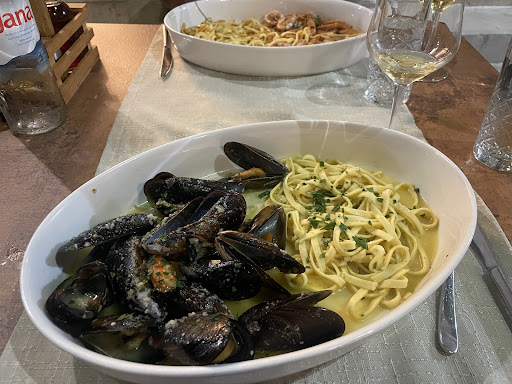 Ā Ā Ā Read moreMy sisters and their husbands came here two weeks ago and raved about it, so we decided to come on our honeymoon. We dropped by earlier in the day to make a reservation, but they only accept them up to 7:30pm. We came around 8:45, and waited on the steps for maybe 20 minutes. You can order a drink while you wait too, and thereās lots of little boutiques on the street to look in. We split the fried calamari that was delicious with a tartar sauce. Then I ordered the mussels and pasta, and my husband ordered the shrimps bazar with pasta. Heās so frustrated with having to peel all the shrimp here so weāre still on the hunt for shrimp without peels š but both dishes were incredible. We split a bottle of white wine made from the grapes only grown on Hvar. I think our total was ā¬100 euro for three plates, a bottle of ā¬30 wine, and a bottle of still wine....