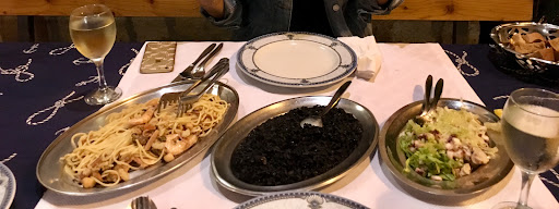 Shortly after we engulfed our starters, the mains arrived. The members of my table had: black ink pasta, seafood pasta and the platter of shrimps. All I can say isā¦wow! SO fresh and authentic in flavor. The food was beautiful, price was very reasonable, and portion size was generous - I rolled out of the restaurant with my full belly and black teeth from the black ink pasta!