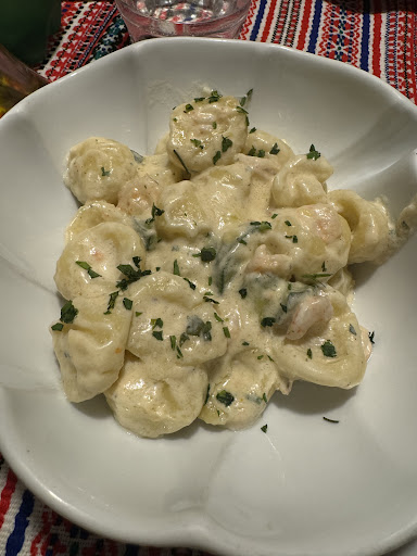 Food was mediocre. We had an appetizer of stuffed pepper served with a red beet paste. Was ok. We ordered the chef's special and the shrimp gnocchi. The chef's special was a goat stew with peas. If you're Eastern European, this is the typical dish that every grandma/mom makes and it's not that special if you've grown up on it, so I would say skip it, especially for 115 kuna. The shrimp gnocchi was decent, but the portion was quite small and was not generous with the shrimp.