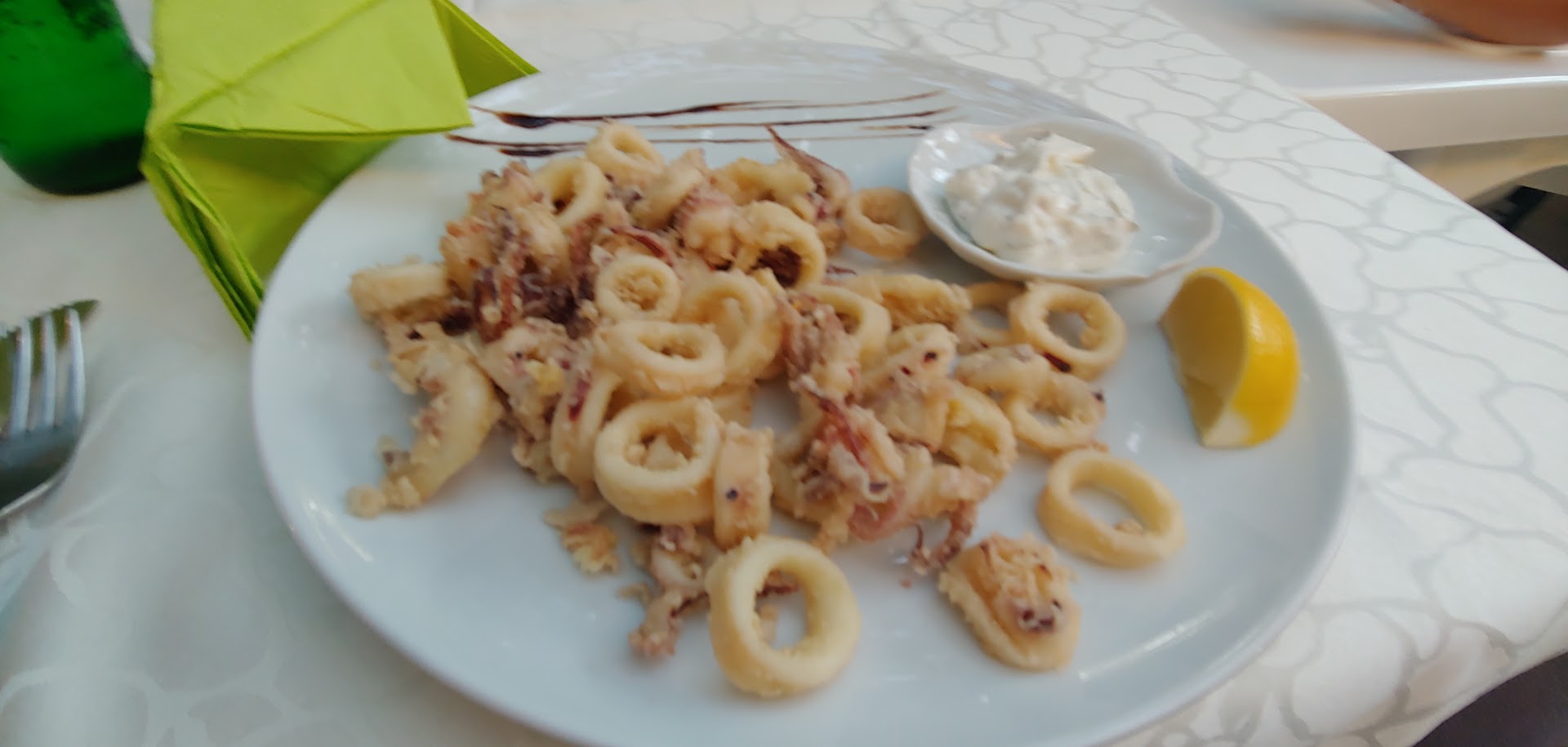 The place is incredibly nice. Dining under the pergola of vines has given us great pleasure. Since the restaurant is renowned for its homemade pasta, we chose a pasta dish with sea bass fillet and shrimps. The composition and description of the dish, not to mention the price, made us think of a single course, which was not the case. The dish was delicious, but absolutely not satisfactory, so we had to order something else. We chose a fry of squid and chips. Having to order another dish brought two problems. First, after a first course of such excellent quality, any other food seems like a fallback; second, the chips were too greasy. I would advise the management to increase the size of the pasta dish so as to turn it into a real single dish, also adding a bit of shrimp. In this case it would be justified to increase the price, but avoiding the customer who chooses it the disappointment of having to order...