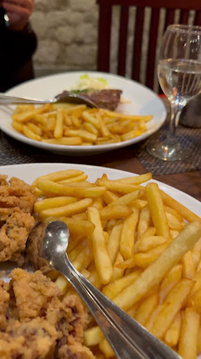 For the main course, we tried the fried calamari, which came in an unbelievably large portion. The calamari was crispy on the outside, tender on the inside, and perfectly cooked. We also ordered the beefsteak with mushroom sauce and a sirloin steak. The beefsteak, in particular, stood out—it was juicy, tender, and full of flavor, cooked to perfection.