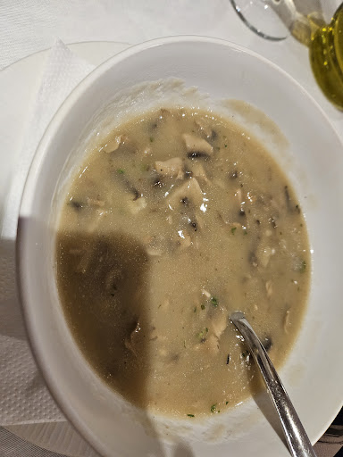I ordered a mushroom soup for a starter, which was fresh and delicious, and for main swordfish. My partner wanted the monkfish, but unfortunately, they were sold out, so I opted for the tempura prawns.