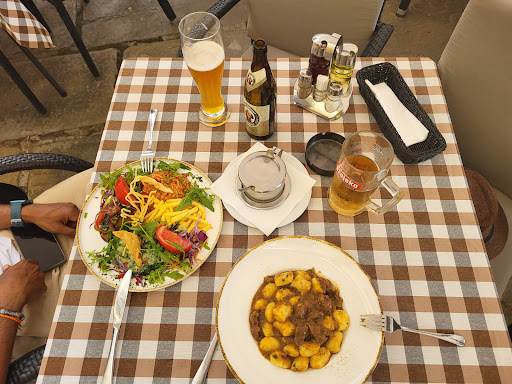 The food we ordered, Gnocci Goulash and a Vegetarian Plate, was extremely tasty and filling. Also the bread with butter with herbs was super tasty and served on a nice plate.