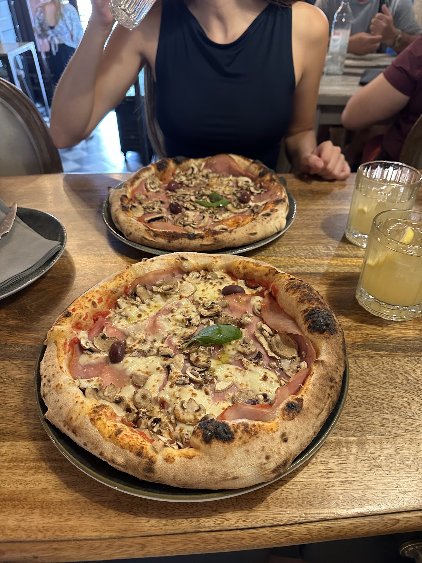 The margarita pizza was delicious, and very cheesy!- very big portion and very reasonable - 7.5ā¬. Me and my girlfriend shared it and we were both full after it.
