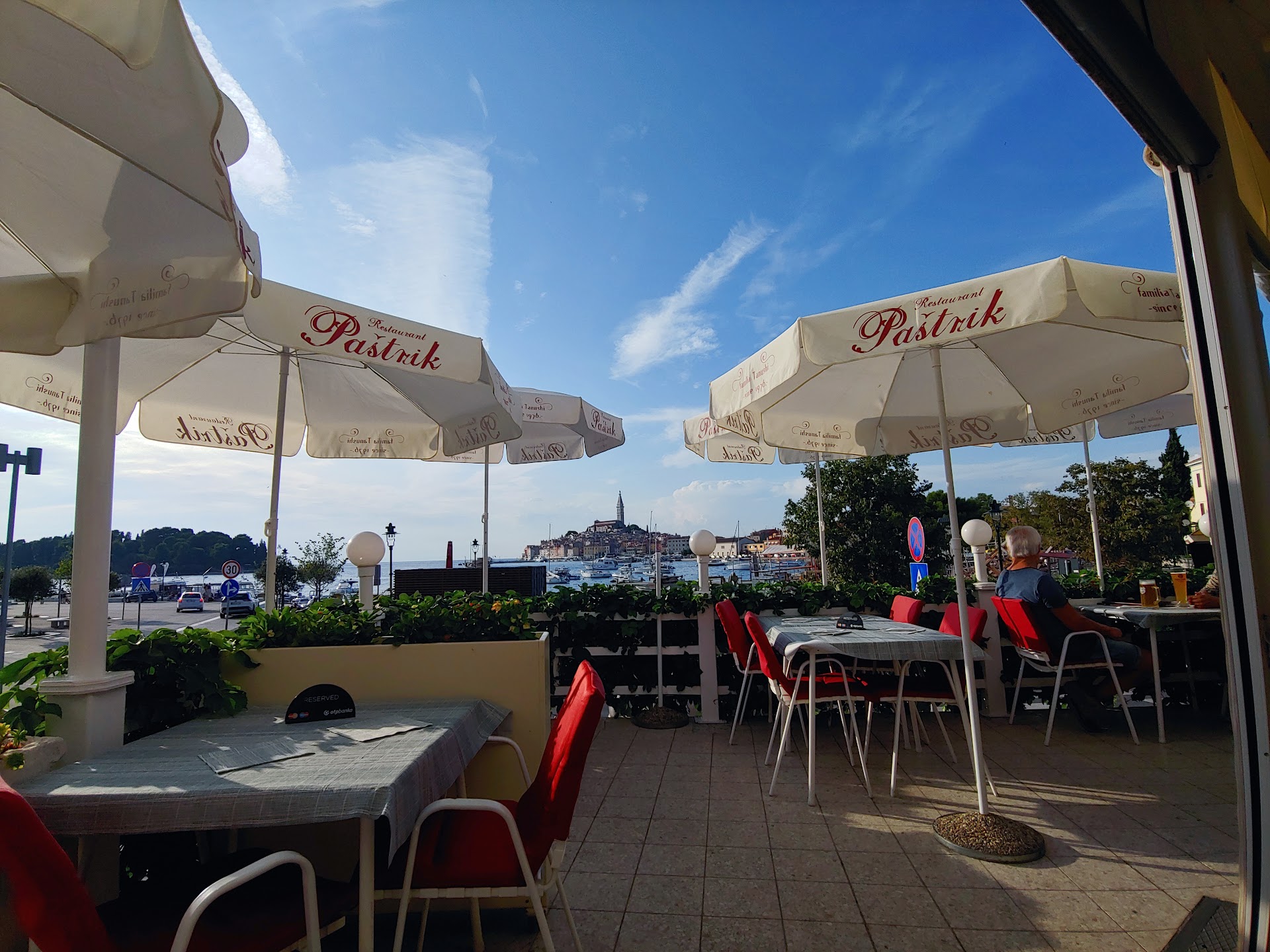 Read moreGreat place for seafood! We went there for dinner without a reservation, we were seated immediately and the place was almost full, so i guess we got lucky, maybe try to reserve if you want to get a table. Nice atmosphere, you see the old town of Rovinj in the distance reflected on the sea - beautiful. The music was also chosen perfectly to fit the Italian seaside theme. The food - we ordered the fish soup - awesome choice, try it if you are a seafood lover. It was delicious and hearty. Then came the Frutti di mare risotto and pasta, both great! We had also a shrimp cocktail - delicious. The house white wine was also very good....