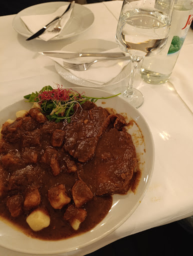 One of restaurants that always served reliably tasty food, with excellent service and pleasant inside atmosphere. Speaking of food, previous time I had baked savory fresh cheese strudel - "zapečeni štrukli" and strudels themselves were soft as a cloud and very tasty, but they have baked it for service with cooking cream instead of sour cream, and cooking cream unfortunately spoiled those tasty strudels. And my salad was vinegary overpowered. And my partner had Samobor's steak and it was below average. Our latest visit was disappointing again, we have ordered calf shank that was jusualy their speciality. But, the waiter brought us a bone and the meat was cut off. Usually they bring us whole shank to be cut at the table. And the reason for that manuver was very prosaic - they have cheated with few pieces of less expensive meat and also added weight to charge us a higher price. And the draft table wine that we have ordered was a bit thin, so maybe they are adding some water before serving. Do not intend to...