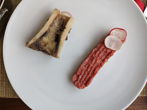 Read moreWe had beef tatar and white fisch ceviche as starters. They were both quite good. As a main course we ordered cuttlefish ragout with gnocchi and the lamb duo. Unfortunately the main course took nearly 1:30h to arrive without any explanation or information given by the staff (-2⭐). The lamb was good but the portion was really small. The cuttlefish ragout tasted a little bit fishy, but was otherwise ok. The menu also said that each main course will be accompanied by a seasonal salad (see Photo). We did not receive a salad (-1⭐). After checking with the waiter, you apparently had to specifically ask for the salad, even though the menu said: "With our seasonal salad, we will complement each of your main dishes". Our experience might be an outlier, because all the other reviews here on google are really positive. Furthermore this restaurant was recommended to us by our host. Hopefully this was just the case of the staff...