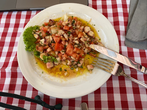 Read moreThis was recommended as a place locals eat and not too expensive so sounded like what we wanted. We pre booked for 4 and turned uo as 6 and easily accommodated and only half full. However, it was not long before it was full with a que forming outside. We sat outside surrounded by poted bushes and next to the public "water spray paving" that the small kids loved, and it all added to the appeal and atmosphere. All the food served up was great tasty, and god servings. The tuna I had was cooked perfectly. A couple of our group did not get what they expected/ ordered, and we guess that was a translation thing when a shrimp salad turned up with king prawns. The wine was as ever was local and delicious. It's not a 5-star restraunt, but it deserves 5 stars for a gooogle rating as I would go back...