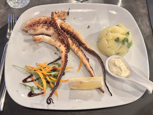 Read moreThe setting was very pleasant, and the staff were friendly and fairly attentive. Lovely elevated view over the seafront and a nice atmosphere. However, I was very disappointed with the value for money of my dish. I ordered a grilled octopus plate for €26, which isn’t cheap, but when it arrived the plate looked empty! Just a few tentacles, a small pile of potatoes, and a spoonful of salad! I know octopus is expensive, but at least visually it would have been more tasteful to fill the plate with some salad or another side to make it look generous. For €26, you expect a nice, well-filled plate!