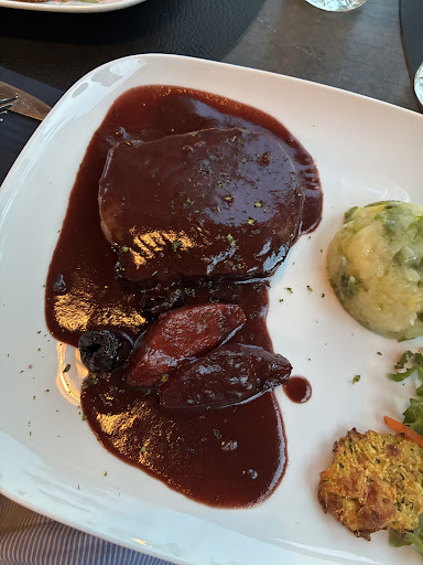 For mains, we had the čepape (well seasoned!), the mixed grilled vegetables as a main portion (apart from this, there aren’t really any vegetarian or vegan friendly main courses), then the dalmatian tuna steak (cooked to perfection, buttery soft at the edges and with a flavorful reduced red wine/plum sauce and cooked pears), grilled veal stuffed with cheese and ham) and a fantastic wild boar stew with gnocchi and a hint of rosemary!