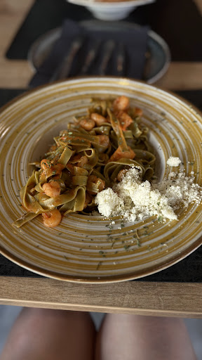 This establishment-a place for future learning- always reminds me to look at individual reviews, not just the overall rating. The waitress had to re-ask what we ordered (even though it was only two dishes and she didn't remember them), but that's okay, not a big problem, as we ordered in English and perhaps she doesn't know the language. The wait wasn't too long. The restroom was dirty—napkins scattered on the floor and water drops everywhere. It felt like my hands weren't any cleaner after I came to wash them 🥲. As for the food, it wasn't tasty. The only positive was that they didn't skimp on the seafood, and that's the only thing that saved the dinner. We ordered salmon and seafood pasta and seafood risotto. The pasta was terrible—there was barely any sauce, only three small pieces of fish, but plenty of shrimp. However, the pasta itself was undercooked. I left half of it on the plate because it tasted like it had been cooked for 3 minutes instead of 10. The risotto was also very bad—the rice was raw and dry. In conclusion, the food is not worth the money. Dinner was ruined, and so...