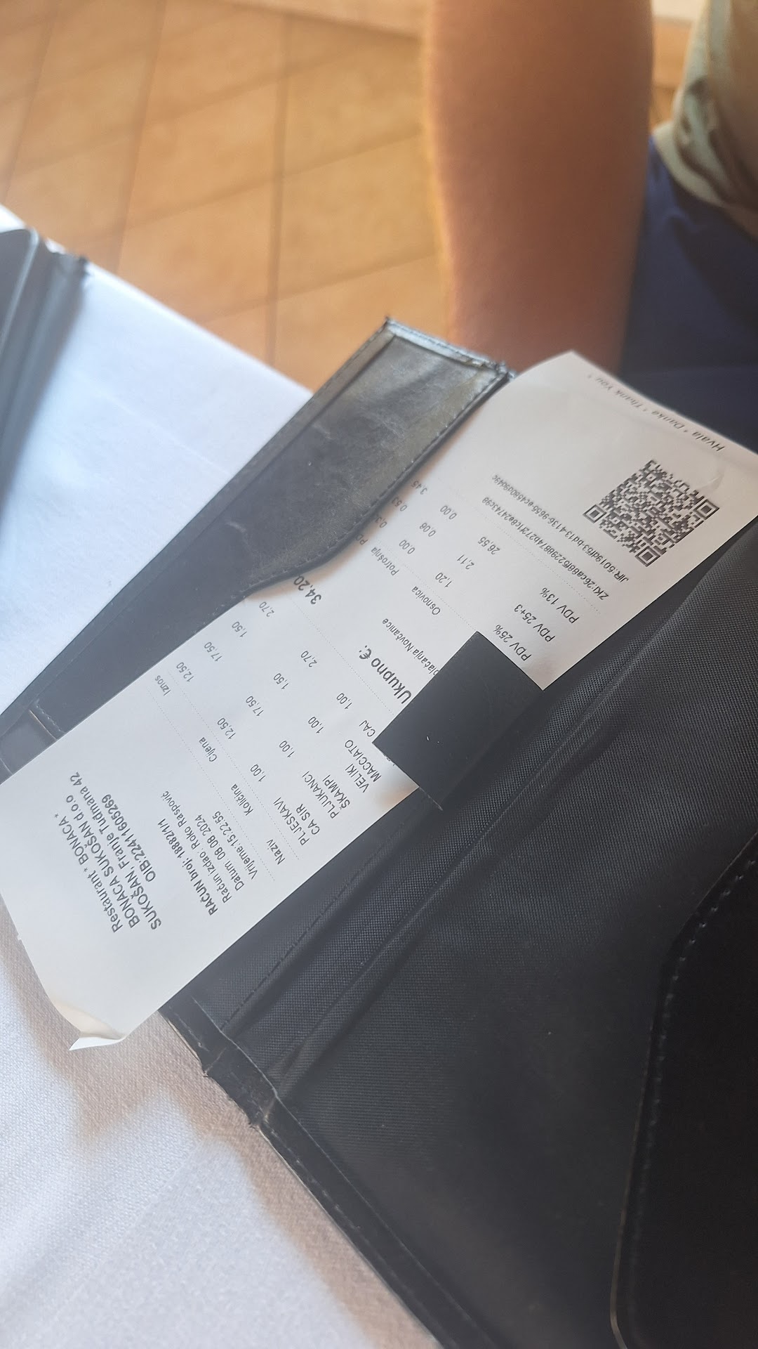 Ove recenzije ne odražavaju naše iskustvo i percepciju. Sinoć nas je bilo četvero. Prvo, pića (trajala su jako dugo): dva velika piva, a za dame boca bijelog vina i velika boca vode. Kad su dva piva stigla na stol, pogledali smo se i primijetili da nedostaje trećina jelovnika, znatno ispod računa. Moja supruga je naručila salatu od morskih plodova kao predjelo, tri pizze i jednu miješani roštilj. Umjesto salate od morskih plodova, dobili smo salatu od tune. Vratili smo se i pizze su odmah stigle. Jedna pizza je bila u redu, calzone je bio malo zagoren na vrhu, moja pizza je bila potpuno crna posvuda, ali miješani roštilj je također bio u redu. Pizza je bila ukusna (na mjestima gdje nije bila zagorena). Kad smo konačno završili, stiglo je predjelo/antipatija: salata od morskih plodova. Od 10 dagnji, 6 je bilo zatvoreno (tj. nejestivo). Ostale dagnje su bile svježe oprane izvana i još su imale ostatke morskih plodova na sebi. Salata je bila prelivena octom i uljem, što je značilo da je samo plutala po tanjuru. Mogli su staviti manje, a svatko je mogao dodati svoje začine.