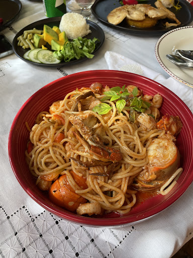 i have been vacationing in cuba for over 25 yrs. this year on my many visits to Trinidad, on a day tour on our own an amigo and frequent travel partner stumbled on the casa de los conspiradores!! we were greeted by a waiter who asked us if we were there for lunch or just a drink. we answered lunch and were shown to a table for two in the shade since it was very hot in the direct sun. we both had a beer to cool off and then ordered lunch. I ordered the chicken and oxy my partner ordered the pasta with lobster parts. it was served to us in very short time. I am a smoker in cuba only, and was given an ash tray and since we were in the open air part of the casa, I was okay with smoking, before the lunch. I am not a huge chicken fan, and was totally impressed with my selection from the menu. before our main course, we were given an appetizer, which was like melba toast with some salsa on it. it was extremely good and we asked the waiter for more!! my chicken was to die for and oxy's pasta was enough to feed 2 or 3 people. she wanted to ask for a doggie bag, but we let the waiter take away her 3/4 full plate since she could not consume any more. after the lunch the waiter gave us the tour of the whole case and even took us upstairs and showed us the or what was the original living quarters of the original owners of the casa a century ago. all in all we were both very impressed with the whole lunch and the bill was a joke!!!!!!!!!!! they are giving away their food and it made us both tip like crazy. I recommend this restaurant for a good wholesome meal anytime. and the gallery is fun to wonder through and maybe pick up some keepsakes for your home. I would give the casa and it's staff and food a 12 out of 10. it is a must see-the gallery and a must do-the restaurant and that is all....