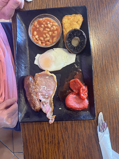Was long overdue at trying their breakfast! Usually we eat lunch which is really good 'pub grub'. Was heading to the shops so decided to drop in for breakfast. There is a choice of small or large portion which consists of sausage, bacon, eggs, hash browns, mushroom (large cap) for a small it's one of each and large is two of each also get tomatoes and baked beans. There is toast, proper butter, marmalade and either a tea or coffee. Really nicely cooked, the eggs were dunkable too which is our preference for fried eggs!