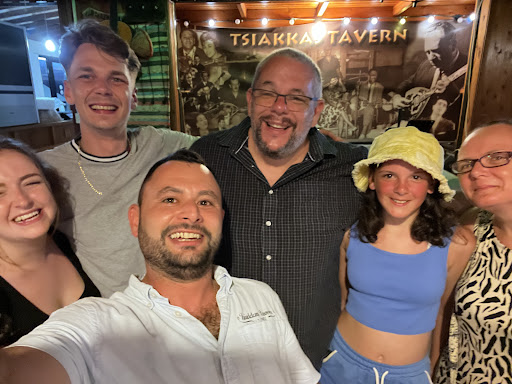 There is plenty of parking to the front of the tavern along with roadside parking if needed and the parking is free. Its rare that we book for lunch but always book for dinner because it is so popular. There is usually traditional Cypriot music playing in the background which adds to the experience without being intrusive.