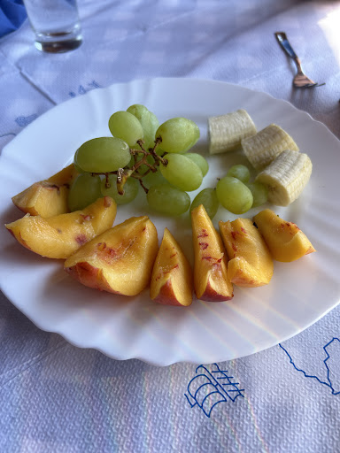 Today we had starters, mains, a litre caraf of wine, a large water and the bill came in at €62 which we felt was really good value for money. As is the norm we had a complementary plate of fresh fruit which rounded off the meal really well...... even if we could not eat it all! Had the hot cheese which was feta topped with a fresh pickled chilli, the fried meatballs (5 big meatballs which are very satisfying) my partner had a retro prawn cocktail to start and same mains. When I remarked on how nice the pickled Chilli's were Yianni arrived with a small platter of chilli's to eat with...