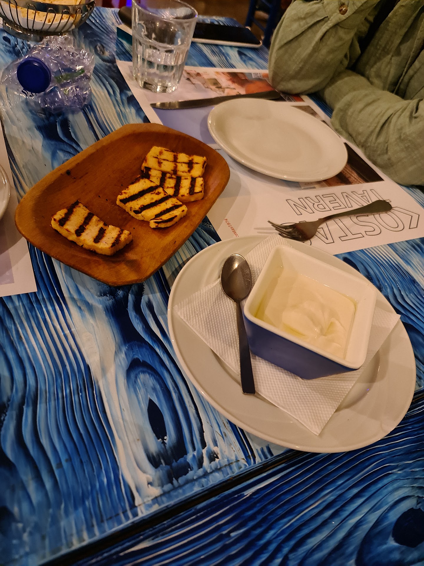 Sympathetic Greek tavern, traditionally decorated. Overcrowded with tables, probably in order to achieve as much traffic as possible. The waiters are very confused, nervous, almost unfriendly, which is very strange for Greek taverns! There are too many people in the bar for such a small number of employees, so they cannot devote themselves to the guest. The food is very small for the sake of portions/comparison, we were there before and ate the same grilled food and grilled squid, a glass of white wine and mineral water/at the restaurant/Isaac fish tavern in Ayia Napa/, the squid were incomparably bigger and served brilliantly, and the grill too, price for the same one was 20e smaller for me! We ordered soup for the baby to take away, the waiter said 2 minutes because we were rushing to the hotel because of the baby, we waited with the baby for 2 minutes in front of the bar and when I called my husband to go, regardless of the fact that we didn't get the soup we paid for, the waiter was rude and impolite to me said "why are you talking, the corba is cooking!" and crossed himself !!! Business today is a great art to preserve, it is a traditional long-standing family cafe that the workers will destroy with their behavior! We will never go there again, because for our money we want good food and service and to feel comfortable on vacation! You will be fooled at first sight by the atmosphere full of pub music...but you may be very disappointed!...
