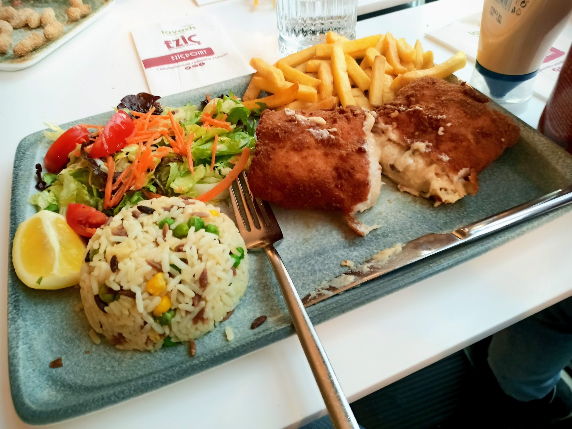 The restaurant offers a huge variety of self designed food but very few of the local Cypriot dishes which are so delicious. The "modernized" food offered in this place was generally prepared with additional melted cheese and all looked creamy. I did not like this kind of unhealthy fatmakers. Finally we ordered kebab which was not bad, it was just average. The service was all in all extremely unprofessional, careless and unfriendly. When I paid with my credit card, the waiter watched carefully my typing fingers unless I had to tell him to keep distance when guets entering their Codes in the machine. Unbelievable! Who is teaching this guys? According to the weak circumstances (food and service), I don't feel any desire to visit this snobbish place again. There are much better...