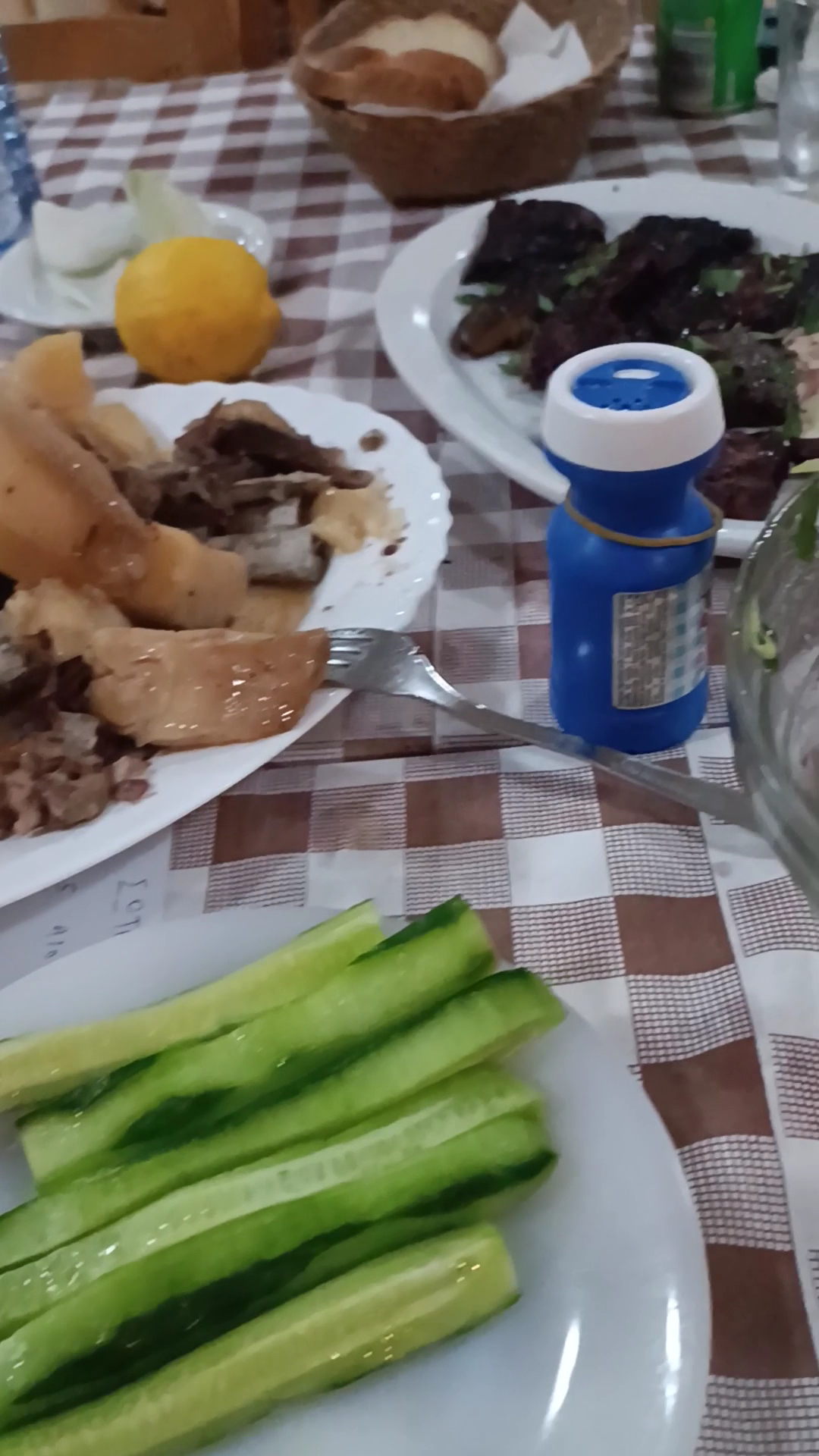 Następnego wieczoru udaliśmy się tam ponownie, już po otwarciu lokalu. Zamówiliśmy kleftiko, talerz grillowanych różności i tzatziki. Kleftiko było wyciągane z pieców obok restauracji. Porcje były ogromne, do całości dostaliśmy 2 pomidory, 2 ogórki, cytrynę i cebulę do samodzielnego pokrojenia oraz pieczywko. Ja ledwo dojadłem swoją porcję, żona nie dała rady i połowa warzyw została nieruszona. Na koniec poczęstowano nas jeszcze baklawą.