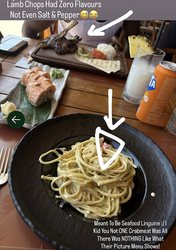 Read moreHonestly I probably wouldn’t have left such a bad review if they had Rectified their mistake and take accountability for their wrong doings BUT instead they are the type to blame customers even tho the evidence stares them in the face. I had no problem in paying the minute they said they refuse to take my dish off the bill because they said I should have told them first regarding my Dish ‘Seafood Linguine’ (refer to photo & show me what part of seafood is that) I legit noticed after I dug in under I’d say two forks taste till I started to wonder where the rest of seafood was thinking it may be hidden underneath but nope I kid you not just that one cube of crab meat classed as seafood but the picture shows mussels squid etc there was NONE of that lol then they took long to rectify so I suggested to just leave it because not only there was no seafood but pasta was under cooked so I couldn’t be asked to receive same thing so suggested to take it off the bill the woman said a chef will NOT take of bill because I touched it before telling them :/ I said well how was I meant to know for sure if I didn’t dig in haha and I said you can see it’s still full not like I had eaten more than half then changed my mind the plate was still full lol..