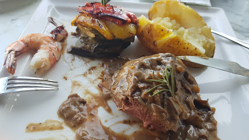 Read moreHow we ended up here: We went next door to Hobo Mediterrano, we sat down and nobody came to give us a menu or give us any attention. We picked up the menus ourselves as the table they were stacked on were next to us, we saw there want anything we wanted on the menu so after 10 mins we got up and left and landed on this gem Cafe Calma. Soon as we got to their door 2 not 1 hostess/waitress welcomed us at the door and were quickly seated. View is lovely and different with all the yachts parked right in front. The food was delicious, the steak was cooked to perfection just as I ordered, the veg was sweet and so tasty, the Seabass and prawns were great, just the Octopus was cooked with too much wine. Overall a must...