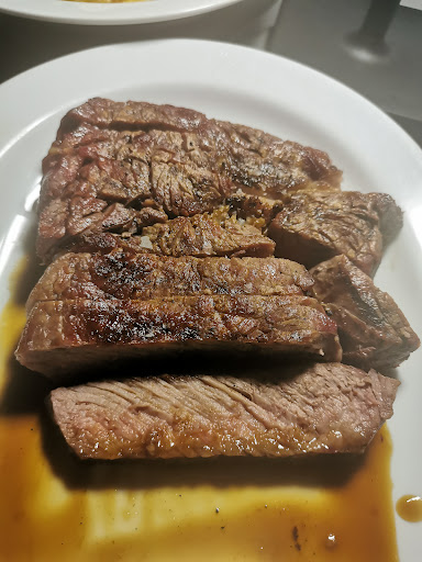 However, the ABSOLUTE WORST was the sirloin steak. For the absurd price of €45, we got a chewy, blant and ULTRA OVERCOOKED piece of meat that we only ate because we aere famished. The steak was borderline disgusting and no self-respecting chef would serve it - this tells us a lot about what type of business this is.