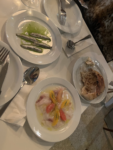 We tried a variety of dishes: warm bread with date butter, sea bass, sardines, cauliflower, pork, and finished with a dessert. Everything was beautifully presented and absolutely delicious. The portions were more than enough for two, and each dish had its own distinct character.